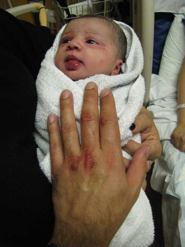 Our second child, a daughter, our lovely Katerina, seen here just moments after she has been delivered