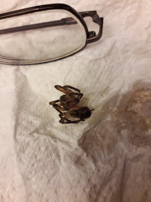 so I ran upstairs. He's a kid and doesn't like big spiders. Kill it he insisted, normally I try to free spiders but he was so insistent and